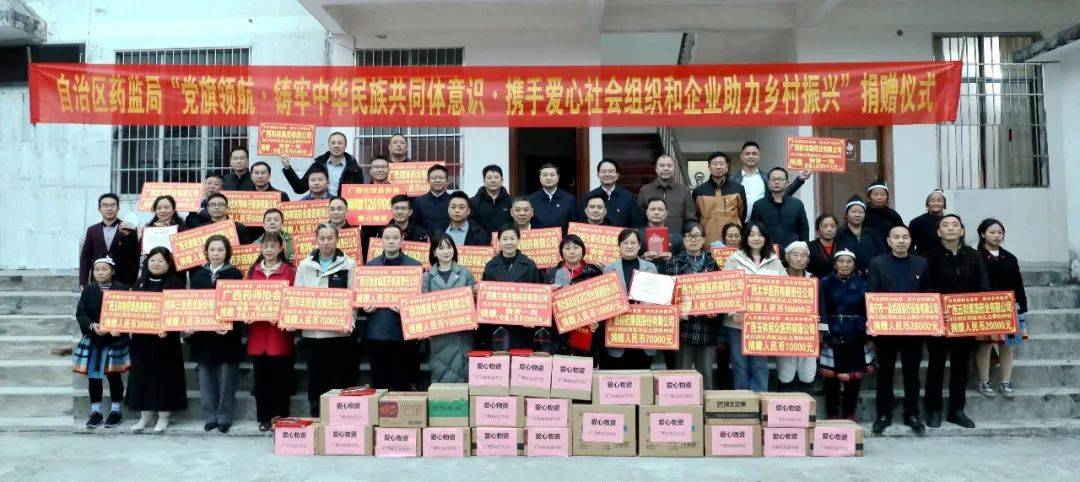 天緣綠集團(tuán)與廣西醫(yī)藥商會(huì)、廣西藥師協(xié)會(huì)、廣西醫(yī)療器械行業(yè)協(xié)會(huì)、廣西化妝品協(xié)會(huì)等眾多單位跟隨廣西壯族自治區(qū)藥監(jiān)局領(lǐng)導(dǎo)攜手共赴南丹縣,開(kāi)展了以“黨旗領(lǐng)航·鑄牢中華民族共同體意識(shí)·攜手愛(ài)心社會(huì)組織和企業(yè)助力鄉(xiāng)村振興”為主題的幫扶捐贈(zèng)活動(dòng)。